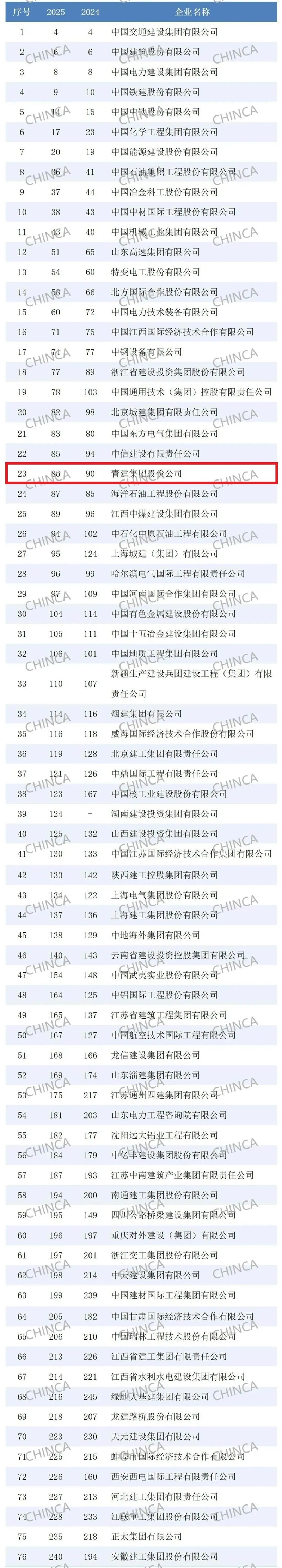 On August 21, Engineering News-Record (ENR) released its 2025 list of the Top 250 International Contractors. CNQC once again made the list, ranking 86th globally. A total of 76 companies from mainland China were included, the highest number of any country. In 2024, Chinese companies on the list reported combined international revenues of USD 127.32 billion, up 3.6 percent year on year, accounting for 25.4 percent of the total international revenue of all listed firms. Despite a complex and volatile global market, Chinese contractors continued to expand steadily overseas, demonstrating strong resilience and adaptability.